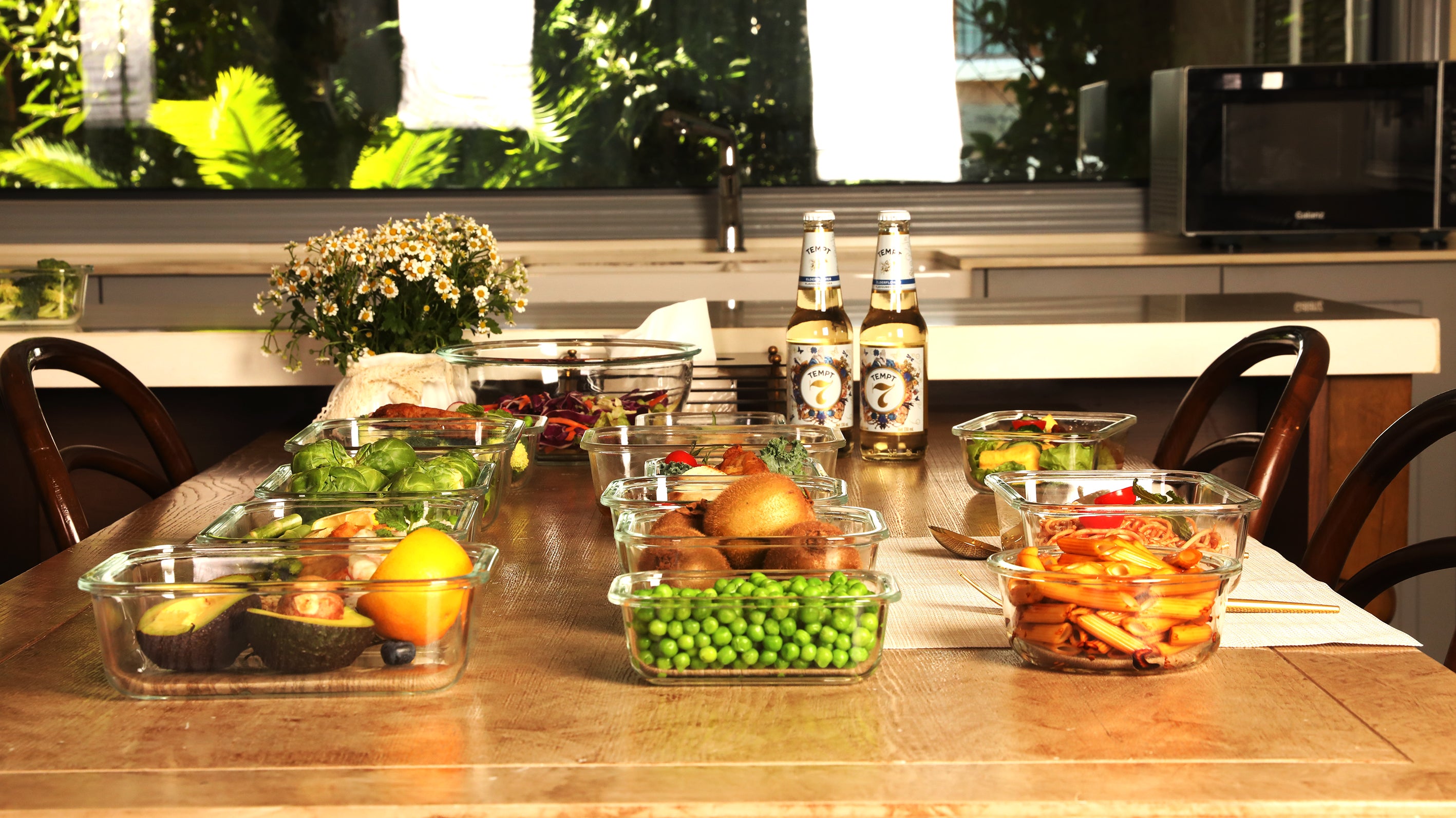 7-Pack Glass food storage container with silicone glass lid, includes gas valve, BPA-free, leak-proof food container(Green)
