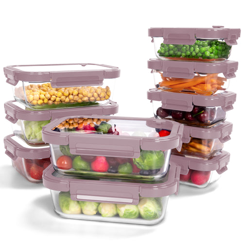 12-Pack Containers Glass Containers with Glass Lids BPA Free, Leak Proof Food Container(Pink)